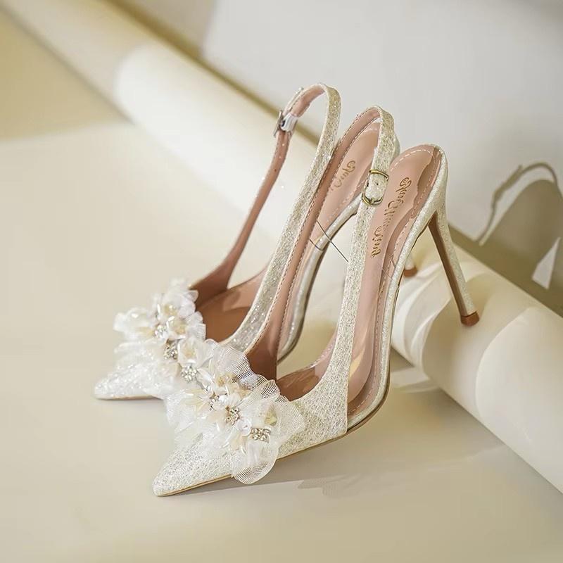 All Match Elegant 6cm 8cm 10cm Spitzschuh Slingback Stilettos Sandalen 2025 Sommer Damen Hochzeitsschuhe Hohe Absätze Model Party