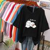 Kurzärmeliges T-Shirt, Locker sitzend, Schlankmachendes bedrucktes V-Ausschnitt-Top für Damen