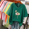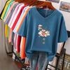 Kurzärmeliges T-Shirt, Locker sitzend, Schlankmachendes bedrucktes V-Ausschnitt-Top für Damen