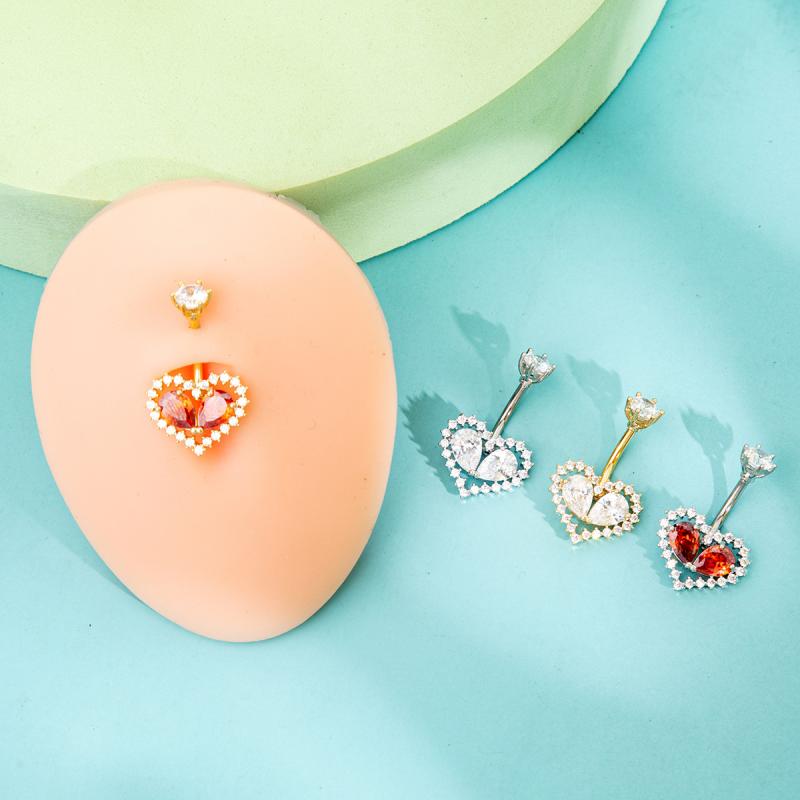 Einfache Herz Bauchnabelringe Glänzender Zirkon Nabelpiercing Hantel Für Frauen Bauchnabelring Strand Körperschmuck Geschenke