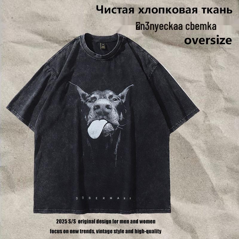 TKPA Dobermann Vintage Rundhals Unisex T-Shirt – Gewaschen, Retro High Street Stil, Lockere Passform, Kurzarm Streetwear