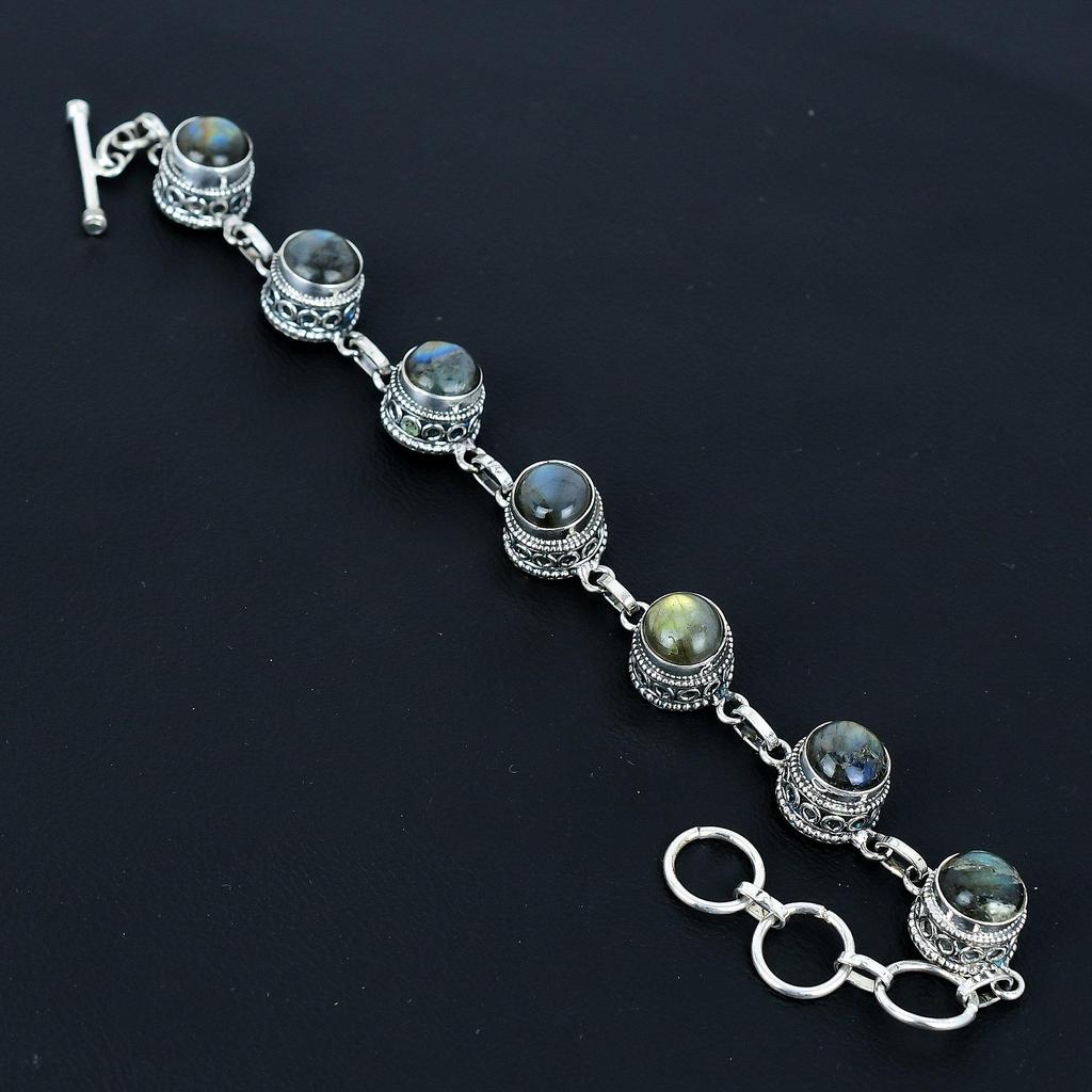Natürlicher Labradorit Armband 925 Sterlingsilber Armband Verstellbares Kettenarmband Handgefertigtes Boho Armband Natürlicher Edelstein Schmuck Verlobungsgeschenke