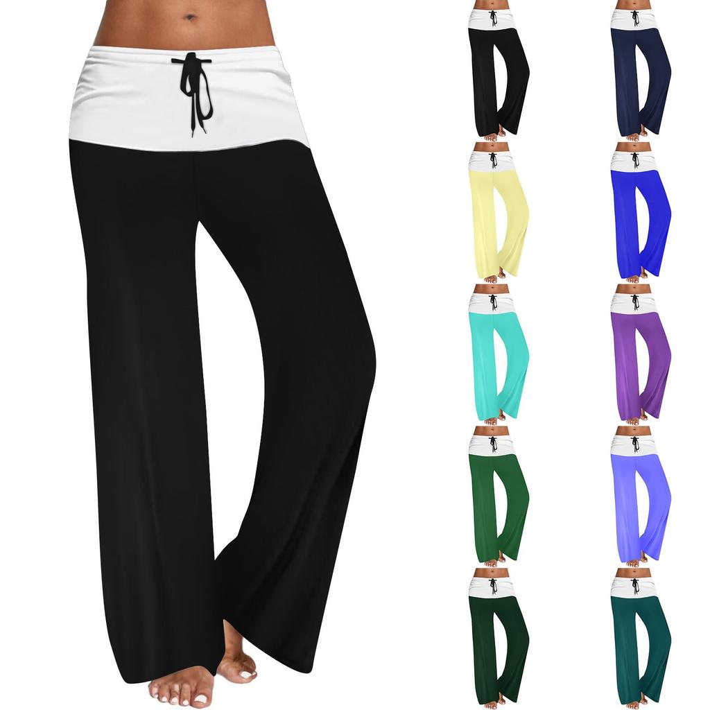 Damen Kordelzug Elastischer Bund Weites Bein Farbblockierung Lässige Hose