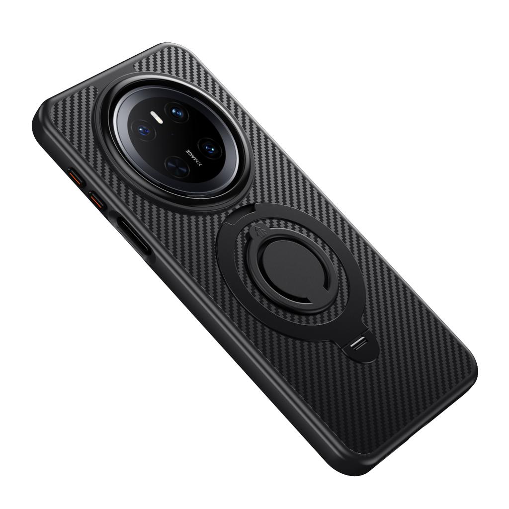 Für Huawei Mate 70 Hülle Kompatibel mit MagSafe Ständer Carbonfaser Textur PC+TPU Rückseite mit Silikonring