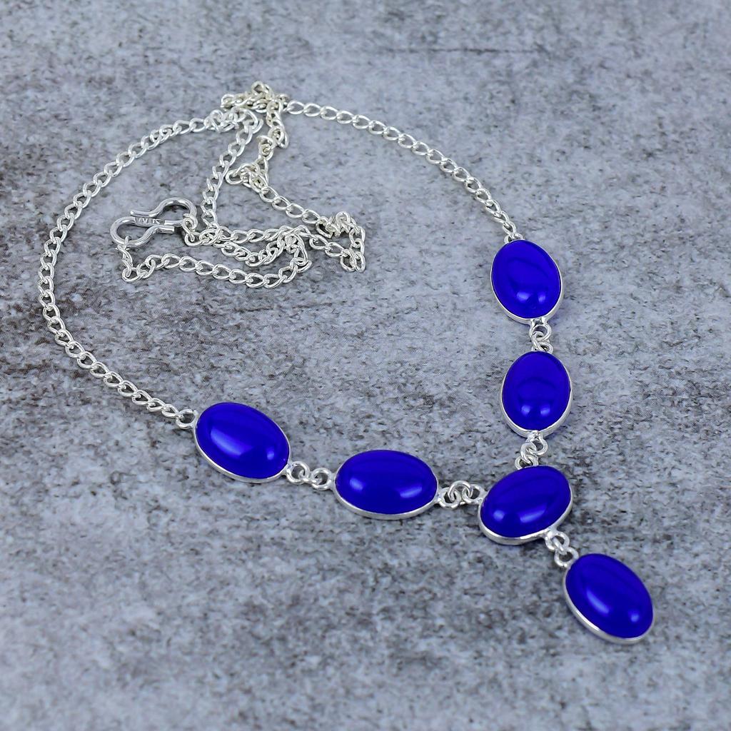 Blue Chalcedony Gemstone Handmade 925 Sterling Silver Jewelry Necklace 18" M-404