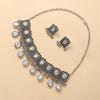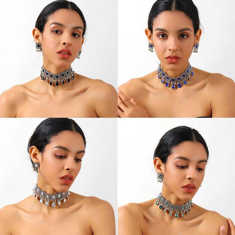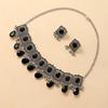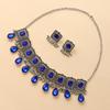 Quadratischer Tropfenförmiger Edelstein Halskette Ohrring Set High-End Retro Ethnischer Stil Diamantbesetzter Schmuck
