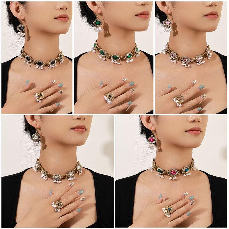 Retro Ohrringe im Hofstil Ringe Halsketten Hochwertiger Diamantbesetzter Quastenschmuck