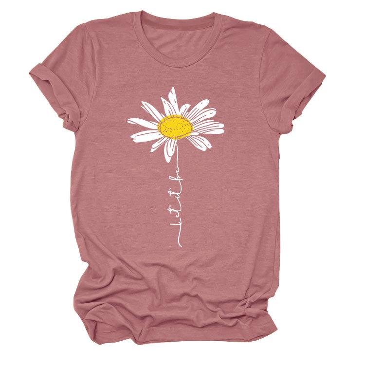 Sommer Rundhals 3D Gänseblümchen Print Top Modische Lässige Kurzarm Damen T-Shirts