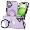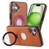 For iPhone 16 Case Magnetic Kickstand PU Leather Coated PC+TPU Phone Cover
