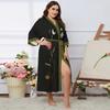 Übergröße Satin Sommer Pyjama & Bademantel Set für Damen - Leichter Luxus Eisseide
