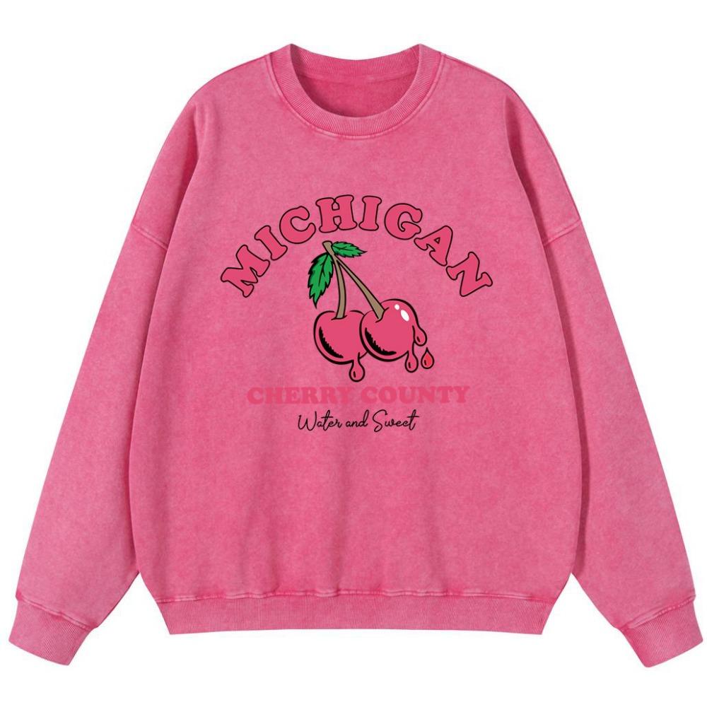 Cherry County Damen Vintage Gewaschenes Baumwoll-Sweatshirt Street Casual Pullover Herbst Lockerer Dünner Stil Kapuzenpullover