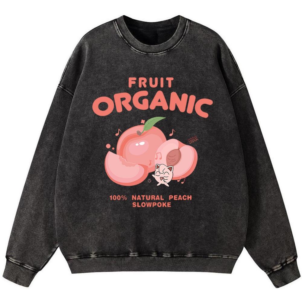 Frucht Bio Pfirsich Damen Vintage Gewaschene Baumwolle Sweatshirt Oversize Pullover Dünner Stil Lässige Kapuzenpullover Locker