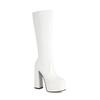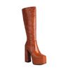Mikrofaser mit Schlangenmuster, Spleiß-PU-Plateau, Reißverschluss-Kniehohe Stiefel, Superhoher hohler dicker Absatz mit Streifen, Sexy Damenstiefel