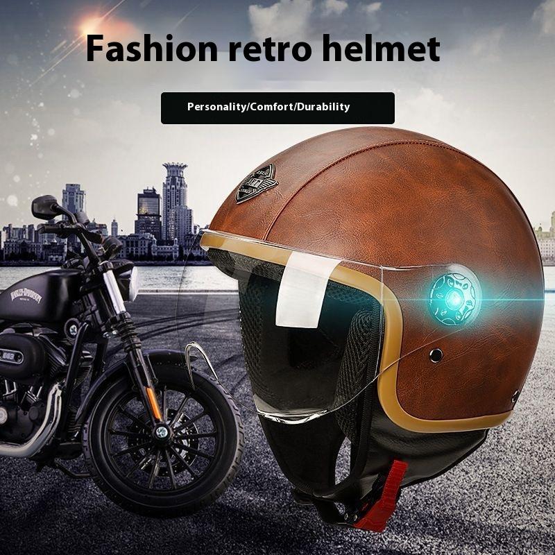 Four Seasons Universal Classic Vintage Leather Electric Vehicle Motorcycle Helmet Harley Helmet Scooter Men's and Women's Half Helmets