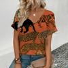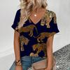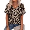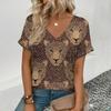 Sommer V-Ausschnitt 3D Leopardenmuster Bedrucktes Top Modische Lässige Kurzarm Damen T-Shirts