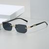 Unpolarisierte Stilvolle Randlose Rechteckige Modebrille für Männer & Frauen - Trendige Goldene Metallrahmen
