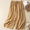Lila Leinen Lässige Elastische Hohe Taille Weite Damen Hose Koreanische Mode Knöchellange Hose für Damen