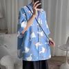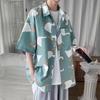 New Hong Kong Style Shirt Loose Short-sleeved Shirt Korean Style Versatile and Handsome Summer Cartoon Top Coat