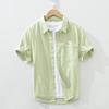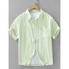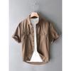 Einfaches Freizeit-Baumwollhemd für Herren Kurzärmlig Sommer Locker sitzend Doppelpattentaschen Arbeitshemd