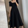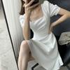 Summer Short Sleeve Square Neck Elegant Women Dress Fashion Loose Slim Fit Casual Office A-line Party Dresses Female Simple Solid Color Woman Clothing