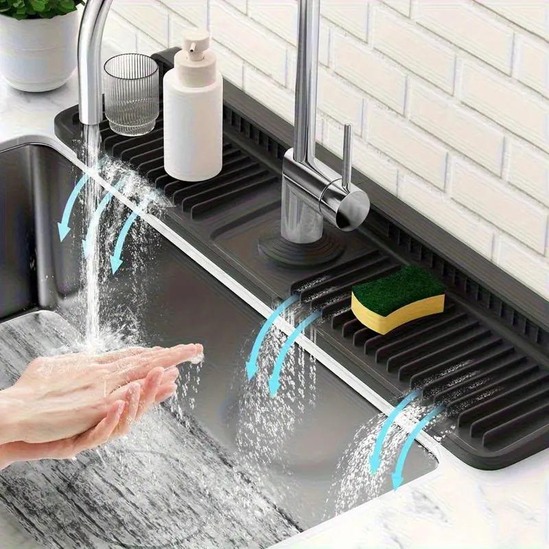 Faltbarer Silikon-Spritzschutz für Küchenspüle, mit 7° geneigtem Design| Schnell abtropfende Armaturen-Rückmatte