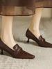Französisches Retro-Temperament Damenschuhe mit niedrigem Absatz Frühling neue Leder spitze hohe Absätze kleine Lederschuhe große Größe 43