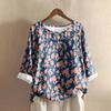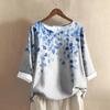 Damen Casual Dreiviertelarm Rundhals Farbverlauf Bedrucktes Baumwoll- und Leinenoberteil