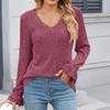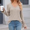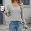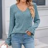 Herbst Einfarbig Rippstrick Gebürstet Lässig V-Ausschnitt Spitze Langarm Basic Shirt Tops