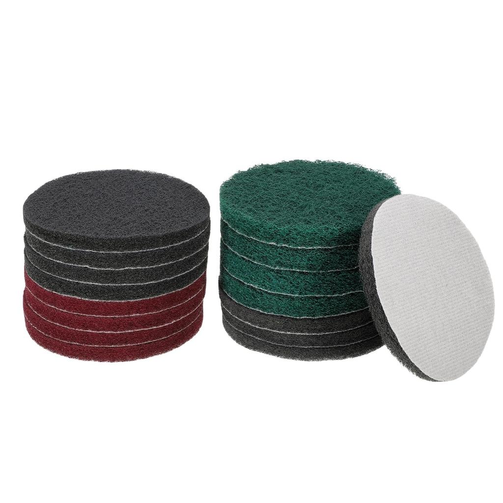 MERKMALE - Klettverschluss-Rückseite hat starke Klebekraft, die fest an der Schleiftellerbefestigung fixiert werden kann, wodurch sichergestellt wird, dass sich die Schleifscheibe während des Gebrauchs nicht leicht löst. Das Fliesen-Scheuerpad mit gleichmäßiger Körnung und ausgezeichneter Verschleißfestigkeit kann eine hohe Reinigungsfähigkeit gewährleisten.