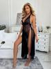 Europäisches & Amerikanisches Mesh Neckholder Langes Kleid: Sexy Damen Dessous Set mit Schlitz