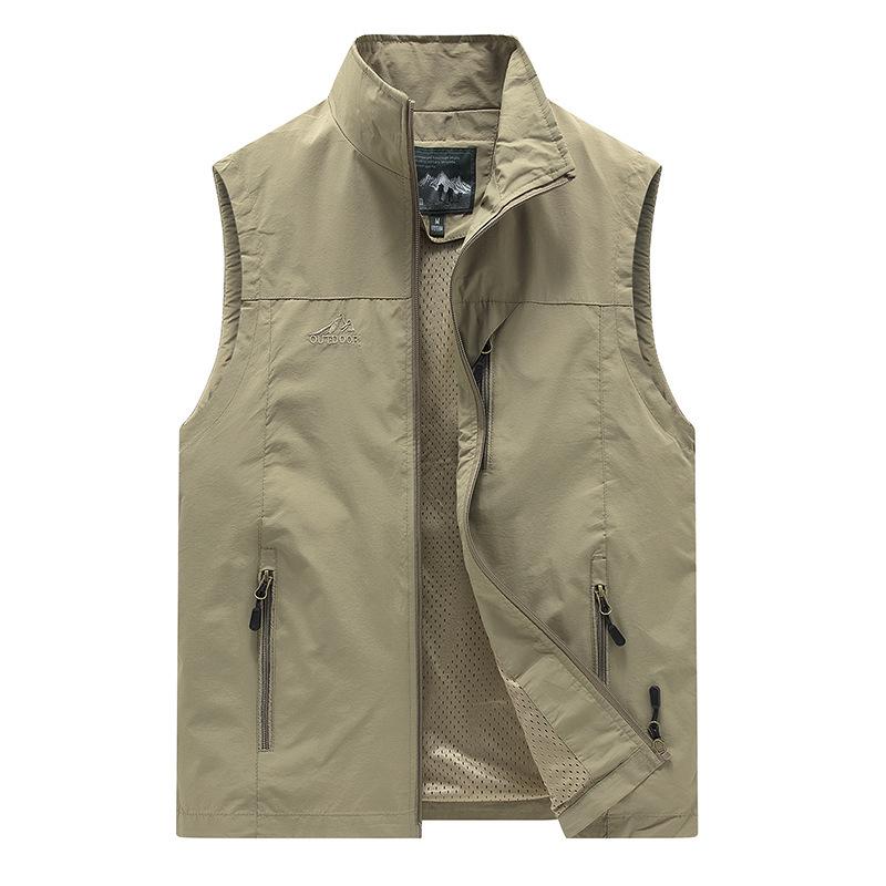 Werten Sie Ihre Outdoor-Abenteuer mit dieser vielseitigen, schnelltrocknenden Weste auf, die für den sportlichen Mann entworfen wurde, der sowohl Stil als auch Funktionalität schätzt.. Gefertigt aus strapazierfähigem Nylon, sorgt es für ein leichtes, aber dennoch mittelstarkes Tragegefühl, perfekt für die milden Temperaturen von Frühling und Sommer.. Die Weste verfügt über einen Stehkragen und einen praktischen Reißverschluss, der eine moderne Note verleiht und Sie gleichzeitig bequem hält.. Seine lockere Passform verbessert die Bewegungsfreiheit und macht es ideal für aktive Beschäftigungen.. Diese Weste mit ihrem einfarbigen Muster passt nahtlos zu jedem lässigen Ensemble und wird zu einem unverzichtbaren Kleidungsstück für alle, die die Natur lieben.