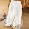Baumwollhosen Damen Sommer Locker Elastisch Lässig Stickerei Hohe Taille Dünn Übergröße Lange Hosen