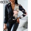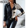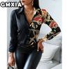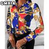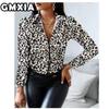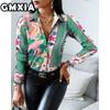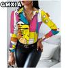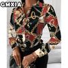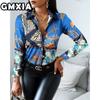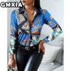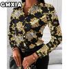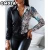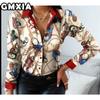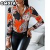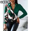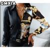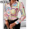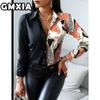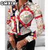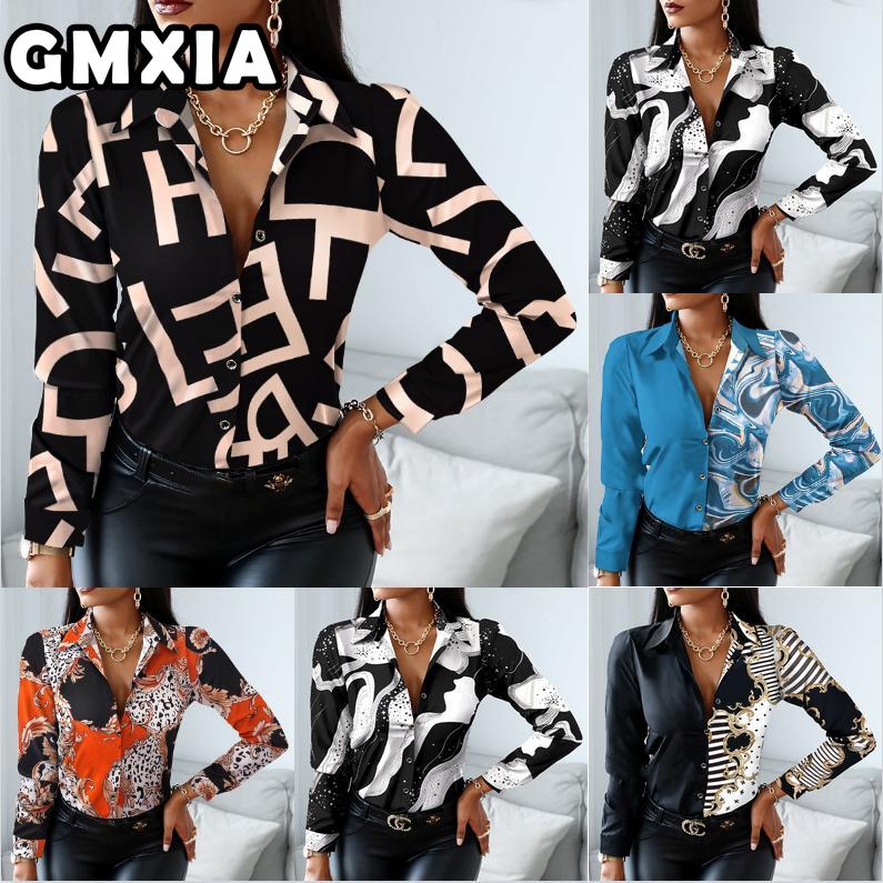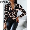 GMXIA Damenmode Lässig Freizeit Einfarbig Druck Langarm POLO Kragen Blusen & Hemden