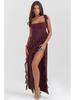 2024 Französisches Rüschenkleid mit Schlitz für den Sommer für Damen