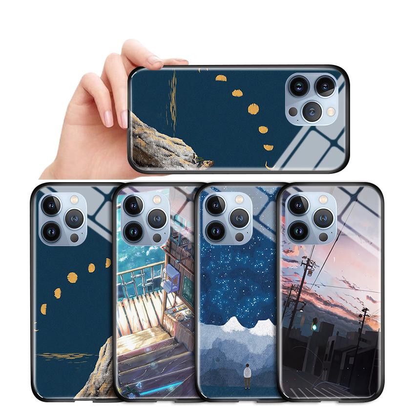 Handyhülle aus gehärtetem Glas für iPhone 11 12 13 14 15 16 17 Redmi 10 12 14C Note10 Note14 Xiaomi 11Lite PocoC75 Weiche Kante Stoßfest Glatte Schale