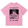 Vintage French Cafe Cat T Shirt Fashion Men/Women Funny Letter Un Croissant Et Un Cafe T-Shirt High Quality Cotton Tees Shirts