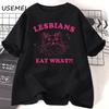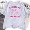 LGBT Lesben Essen Was Katze T-Shirts Lustige Gay Pride T-Shirts LGBTQ 90er Katze Liebhaber Grafik T-Shirts Ästhetische Damenbekleidung Top