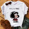 2025 Neues T-Shirt Damen Lustige Cartoon PAZ Mafalda oder QUIERO Cafe Bedrucktes Oberteil Damen T-Shirts Harajuku Lässig Weißes T-Shirt Kleidung