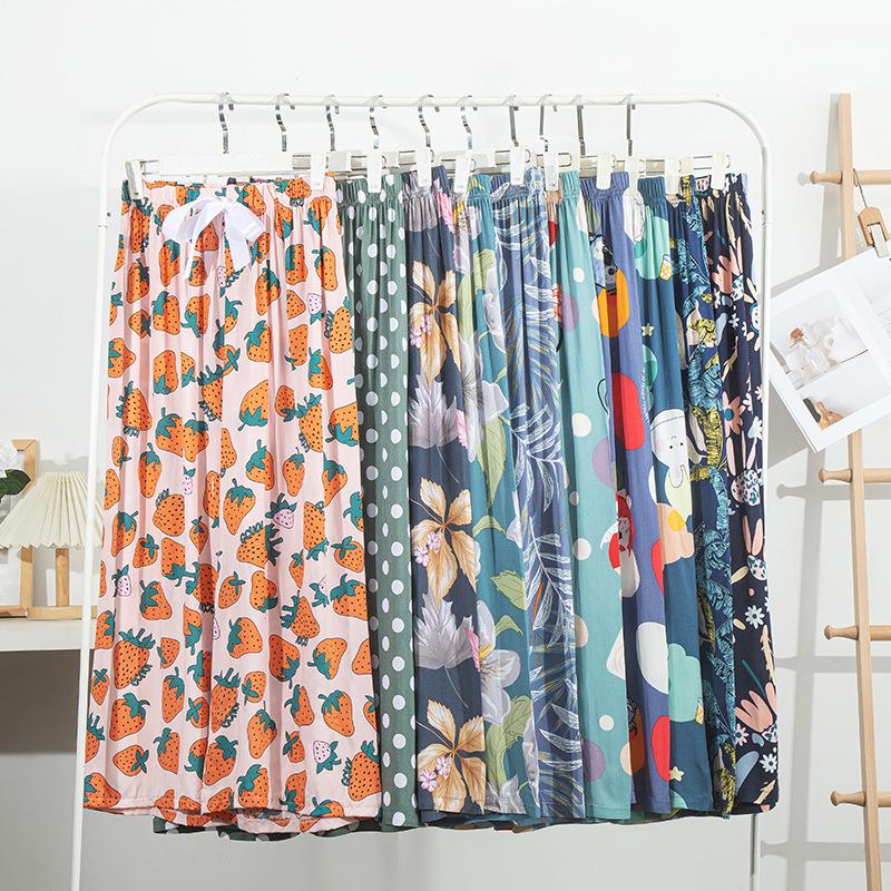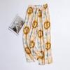 Damen Übergröße Baumwolle Viskose Pyjamahose, Cartoon-Blumendruck, Lockere Neun-Punkt-Strandhose, Outdoor-Bekleidung
