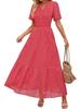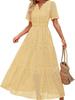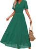 Damen V-Ausschnitt Spitze Kurzarm Maxi Kleid mit ausgestelltem Saum, Erhältlich in mehreren Farben
