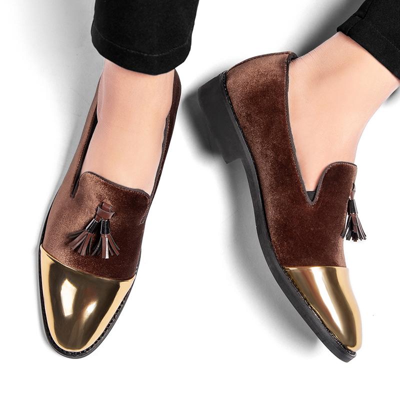 Designer Samt Quasten Slipper für Herren Farbe Patchwork Hochzeitsfeier Kleid Fahrschuhe Formelles Schuhwerk Zapatos Hombre