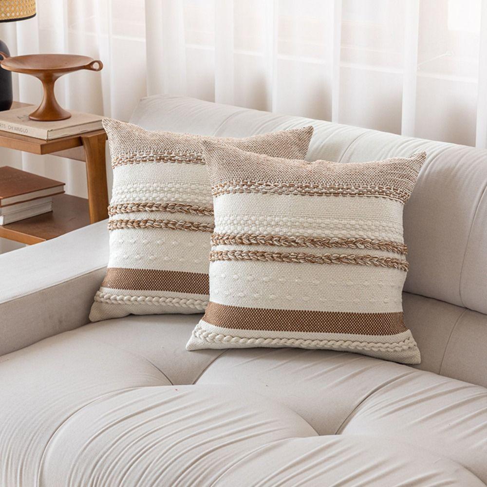 - Vielseitiger Einrichtungsstil: Dieser Sofakissenbezug besticht durch sein schlichtes und zugleich edles Design. Die aufwendige Webart macht ihn zu einem idealen Begleiter für verschiedene Einrichtungsstile, darunter Bohème, Skandinavisch, Landhaus, Rustikal, Marokkanisch und Modern Coastal. Er harmoniert perfekt mit unterschiedlichen Dekoartikeln und verleiht jedem Raum eine elegante Note und eine angenehme, warme Atmosphäre.