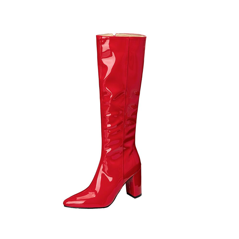 Rot Schwarz Damen Kniehohe Stiefel Hoher Absatz Kleine Große Größe 32 46