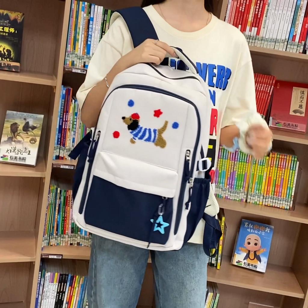 Cartoon-Rucksack mit Kontrastfarbe für Mittelschüler, leichter Schulrucksack, Damenrucksack mit großem Fassungsvermögen