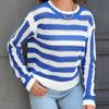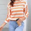 Langärmliger Rundhalspullover für Frühlings- und Herbstoberbekleidung. Nicht leicht zu pillen. Tragen Sie einen leichten Pullover mit Löchern, Streifen und Farbblockdesign.