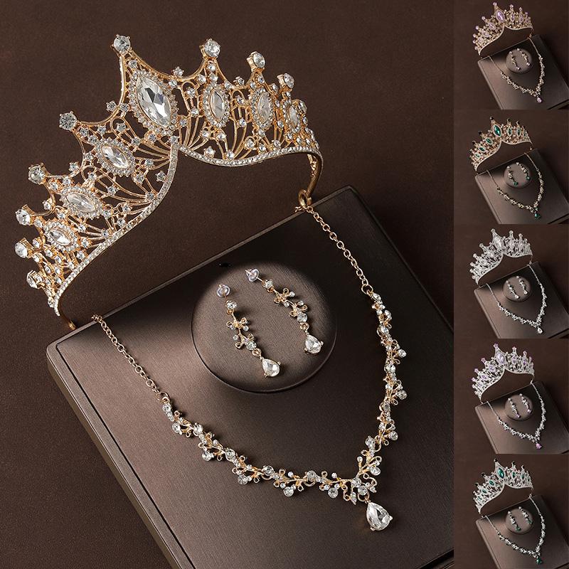 Der Kronen-Stirnband, die Halskette und die Ohrringe aus Legierungsmetallmaterial und Kristallen, glatt, leicht, nicht leicht zu verblassen, langlebig und robust, wiederverwendbar, angenehm zu tragen.
