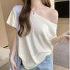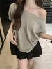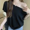 Dieses schulterfreie Strick-T-Shirt mit Fledermausärmeln ist ein lockeres und figurschmeichelndes Kurzarm-Oberteil im lässigen Stil für Damen.