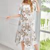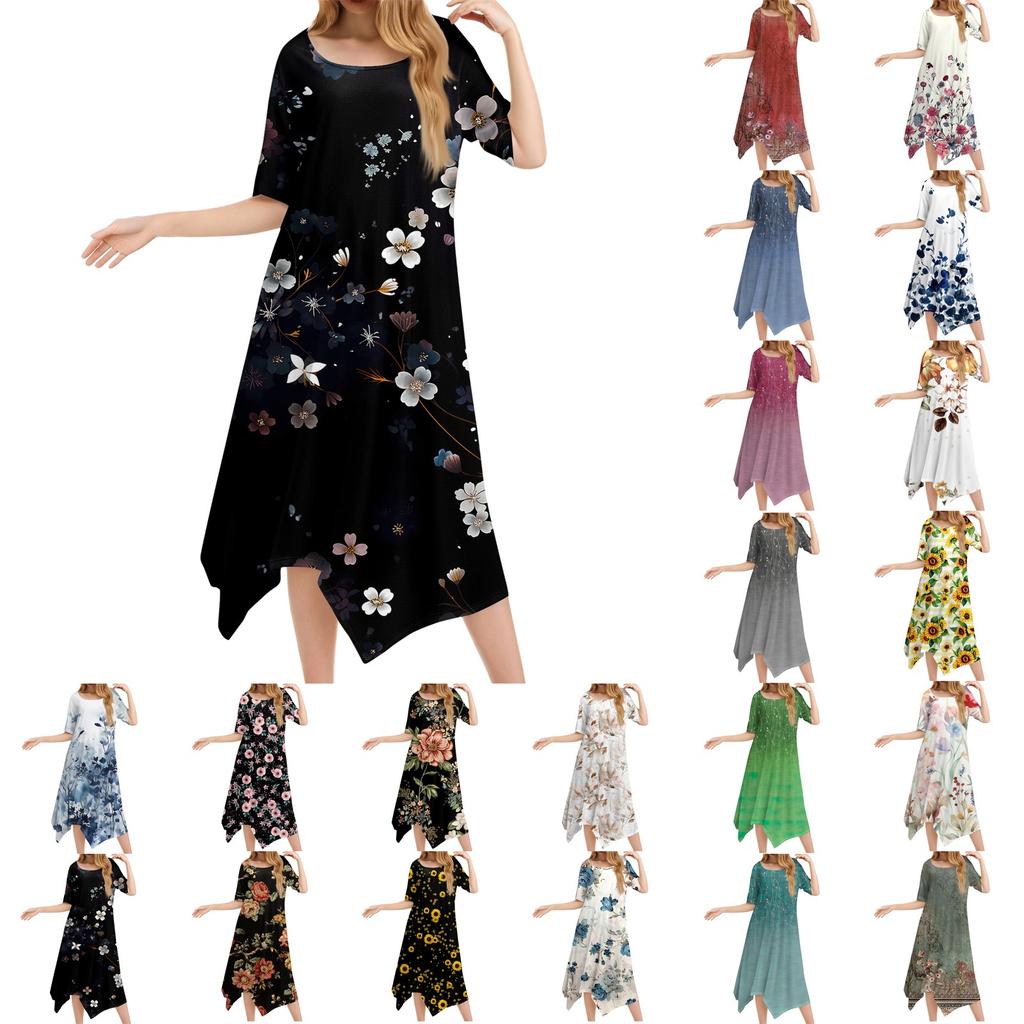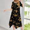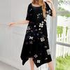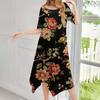 Damen Casual Mode Rundhals Kurzarm Druck Unregelmäßiger Saum Midi-Kleid