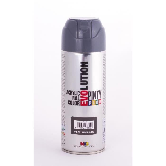 Peinture spray acrylique - Pinty Plus - Gris Fer RAL 7011 - 400ml - Séchage ultra rapide - Intérieur/extérieur