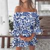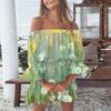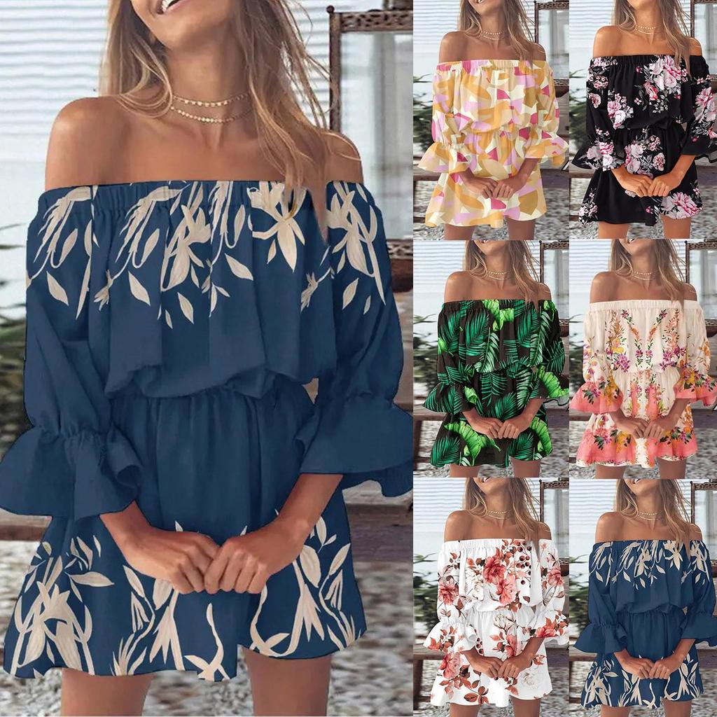 Ladies Casual Sexy One Shoulder Mid Waist Printed Ruffle Sleeve A-Line Dress